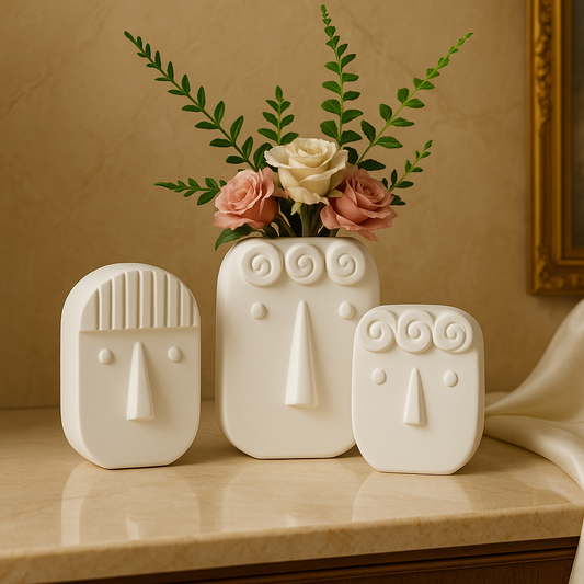 ✨ Ivory Muse – Abstract Face Vase Playful yet poetic, the Ivory Muse brings personality into minimalism. Its sculpted face design evokes modernist art while its soft ivory finish radiates warmth and calm. When paired with vivid blooms or airy botanicals, it transforms into a conversation-starting centerpiece — blending art,...